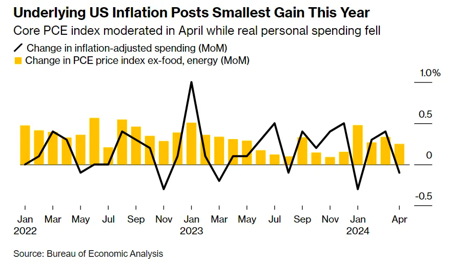 June brought mixed signs about inflation, showing a slow but steady easing. The core U.S. Personal Consumption Expenditure (PCE) index, which leaves out food and energy prices, grew by just 0.2% over the month — less than what was expected. This marks the smallest monthly increase in a year. Both the core and overall indices are growing at rates close to what we saw last March, at 2.9% and 2.8% respectively, which is pretty much what everyone was expecting.