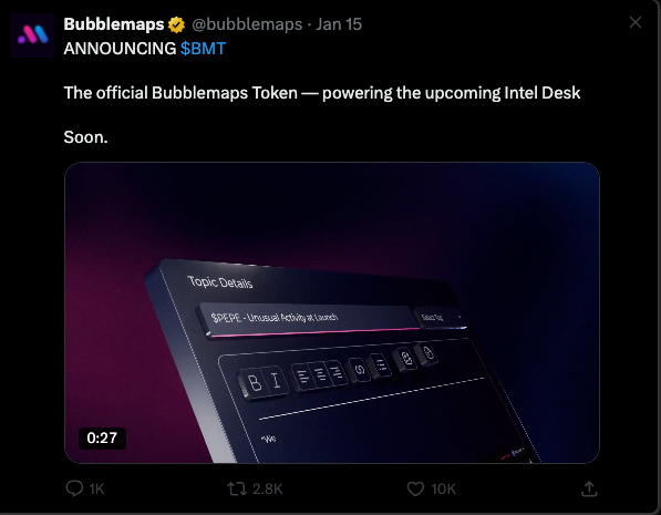 Bubblemaps announced the upcoming launch of the BMT token, which will be integrated into the platform’s analytics services. This token is expected to provide premium access, enhance governance, and potentially serve as a reward mechanism for user contributions.